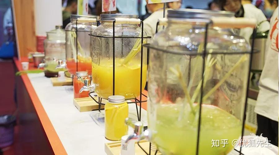 對于中藥材在飲品店的應用,大最熟悉的應該是王老吉了,展會里面這次我們看到了類似的品牌。吸引眼球的食材擺在顯眼的位置,見慣了擺設新鮮水果看到這樣的裝飾還有點意外。跟王老吉類似,這個品牌的產品主打養顏養生,飲品口感會比較清淡。