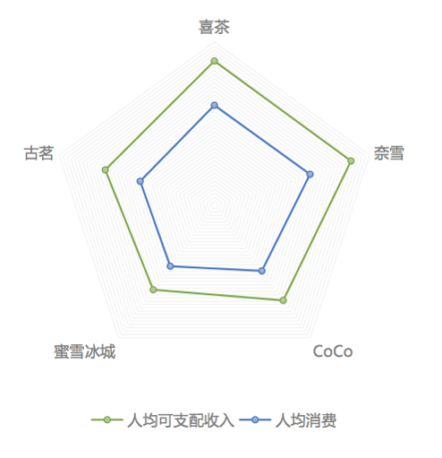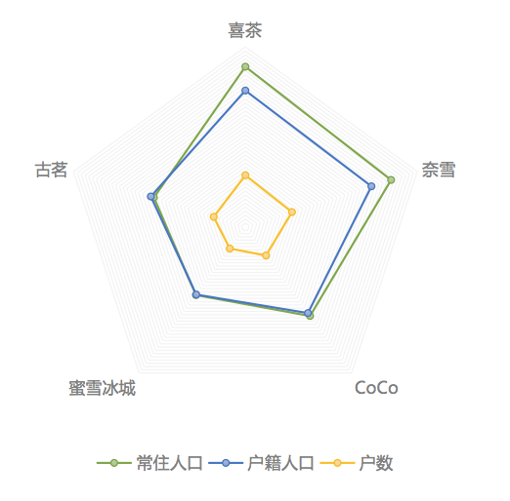 也就是說,喜茶和奈雪の茶的地方,幾乎都有蜜雪冰城、CoCo,但同時(shí),蜜雪冰城、CoCo去的了的地方喜茶和奈雪の茶卻并不一定能去。