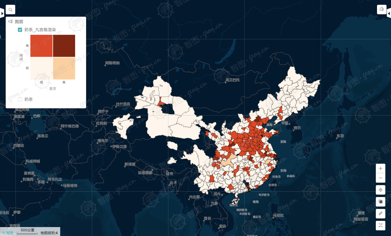 圖/蜜雪冰城全國門店分布格網(wǎng)圖圖/CoCo全國門店分布格網(wǎng)圖新式奶茶布局城市人口經(jīng)濟(jì)分析