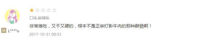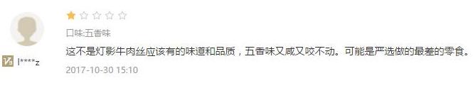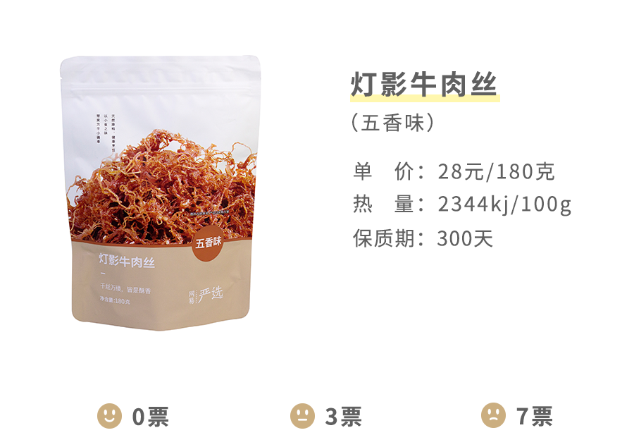 燈影牛肉絲都烏糟糟地結成一坨了,哪有什么“見光透影”的本事啊?吃上去干巴巴的,感覺它生前是一只垂暮之年的老黃牛,完全沒有燈影牛肉本該有的酥脆。看了下代工企業,籍籍無名,調味也比起之前牛肉干測評時吃到的那些川渝品牌差遠了。