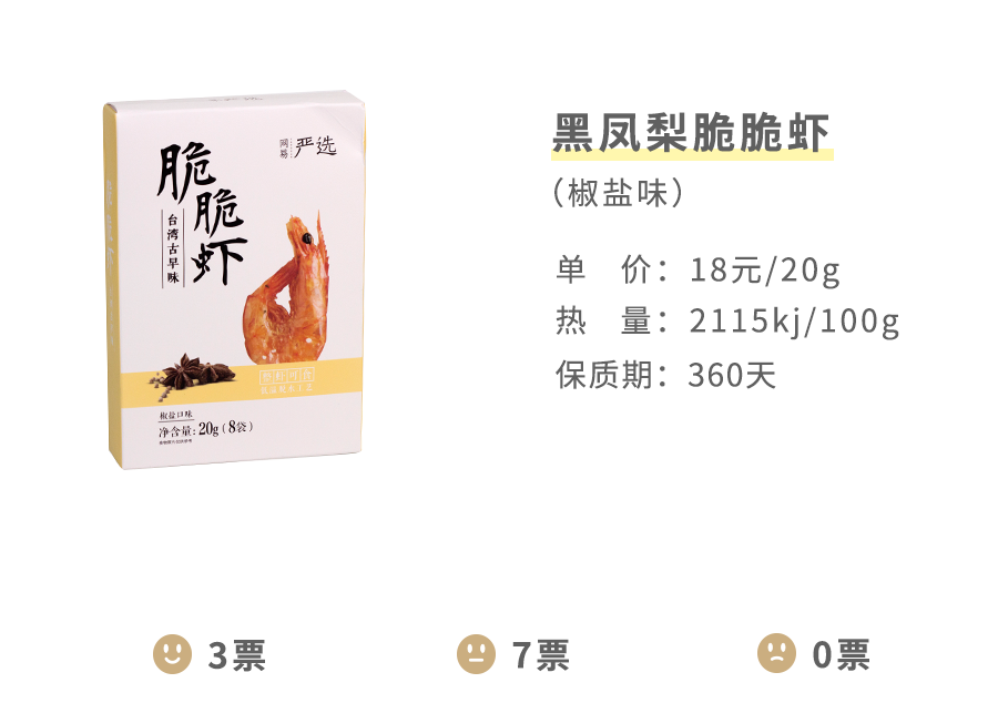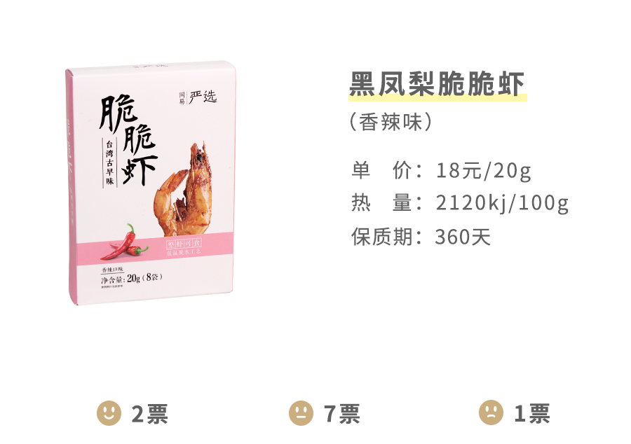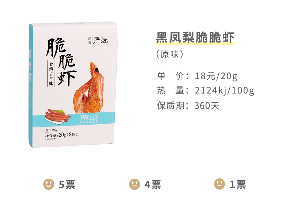 看介紹上說,這蝦是即捕即保鮮、殺菌后脫水凍干的,從源頭上保證了原料的新鮮度。雖然不知道真假,但光是吃凍干之后的,蝦的鮮味還是蠻誘人的。只不過對于沖著肉質Q彈去吃蝦的人來說,脫了水的蝦多少都有點多此一舉。但比起那種吃上去像開洋似又咸又硬的帶殼蝦干,凍干蝦酥脆到連殼都能一起吞的程度,還是挺讓人有好感的。