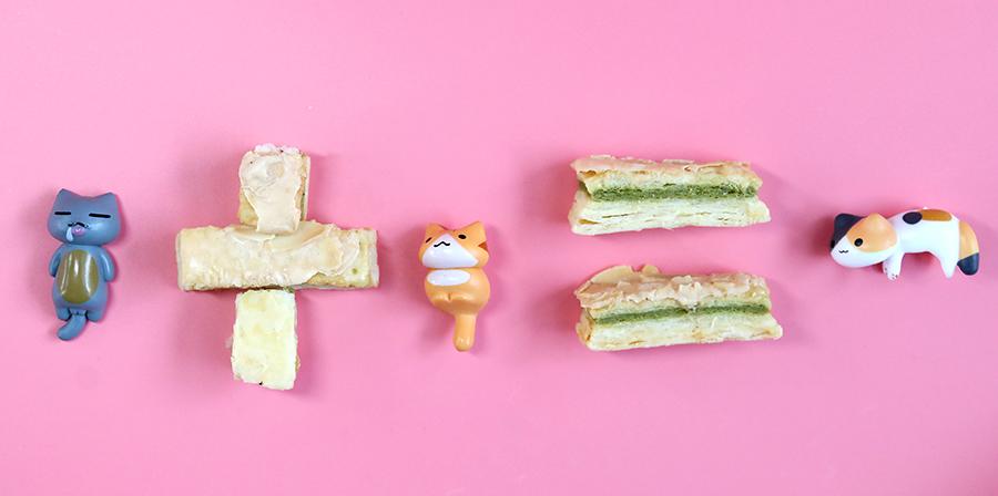 酥皮一口咬下就有非常濃郁的黃油香氣跑了出來,中間夾層加了綠茶粉,奶香里融合了些茶香,吃著不容易膩。