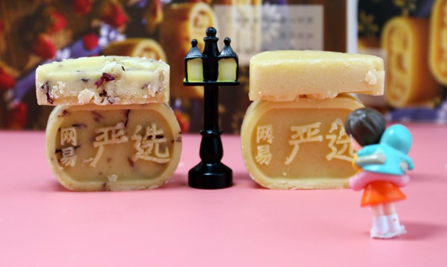 玫瑰味的花香味很濃郁,糕體上還鑲嵌著不少玫瑰花瓣干,吃不吃得慣還得看個人的喜好了。但兩種口味說實話,都缺少些綠豆的香氣。
