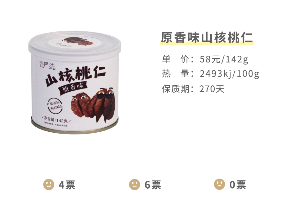 大概看了一下,核桃肉仁都挺飽滿完整的,沒有多少碎末。吃著嘎嘣脆,香氣也夠。本花看這核桃仁還不錯,但身為核桃死忠粉的C探員表示,這款核桃肉顆粒較小,有點縮水了,市面上可以買到比這性價比更高的核桃仁。比如,這款核桃仁的代工企業姚生記自己出的——85塊可以買到218g的,量更多更過癮啦。Well,要不要買來試試,各位看官還是自己定奪吧。