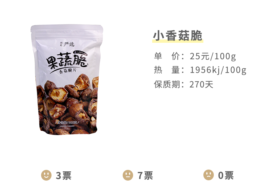 這款香菇脆是油炸而非凍干的,盡管介紹里宣稱是“含油率僅10%”,但感覺吃多了總歸不怎么健康,況且香菇的吸油能力又這么強。話雖如此,味道還是頗得香菇真傳的。吃上去有點像鹽焗、燒烤過的味道,很純粹的香菇香氣,沒有多余的調味,偶爾嘗嘗還是不錯的。