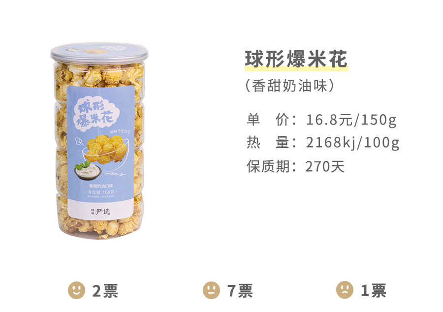 首先,包裝的密封程度就有待商榷,因為開封后蓋緊蓋子,過一會兒再吃還是有點潮了。其次,探員們吃下來,倒不是說難吃,但普遍都反映這爆米花太一般了,隨便一個雜牌就可以拿來diss的感覺,不夠突出。總之,三種口味吃上去都很一般,勸你還是別買了。
