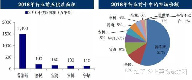 中國高標準倉庫供應方集中度非常高,普洛斯(GLP)是業內的龍頭,根據戴德梁行統計,普洛斯約占行業前十份額的55%,2016年普洛斯供應面積達到1,490中國米,行業前五供應合計達到2,070中國米,可見出普洛斯以外的市場份額相當分散;